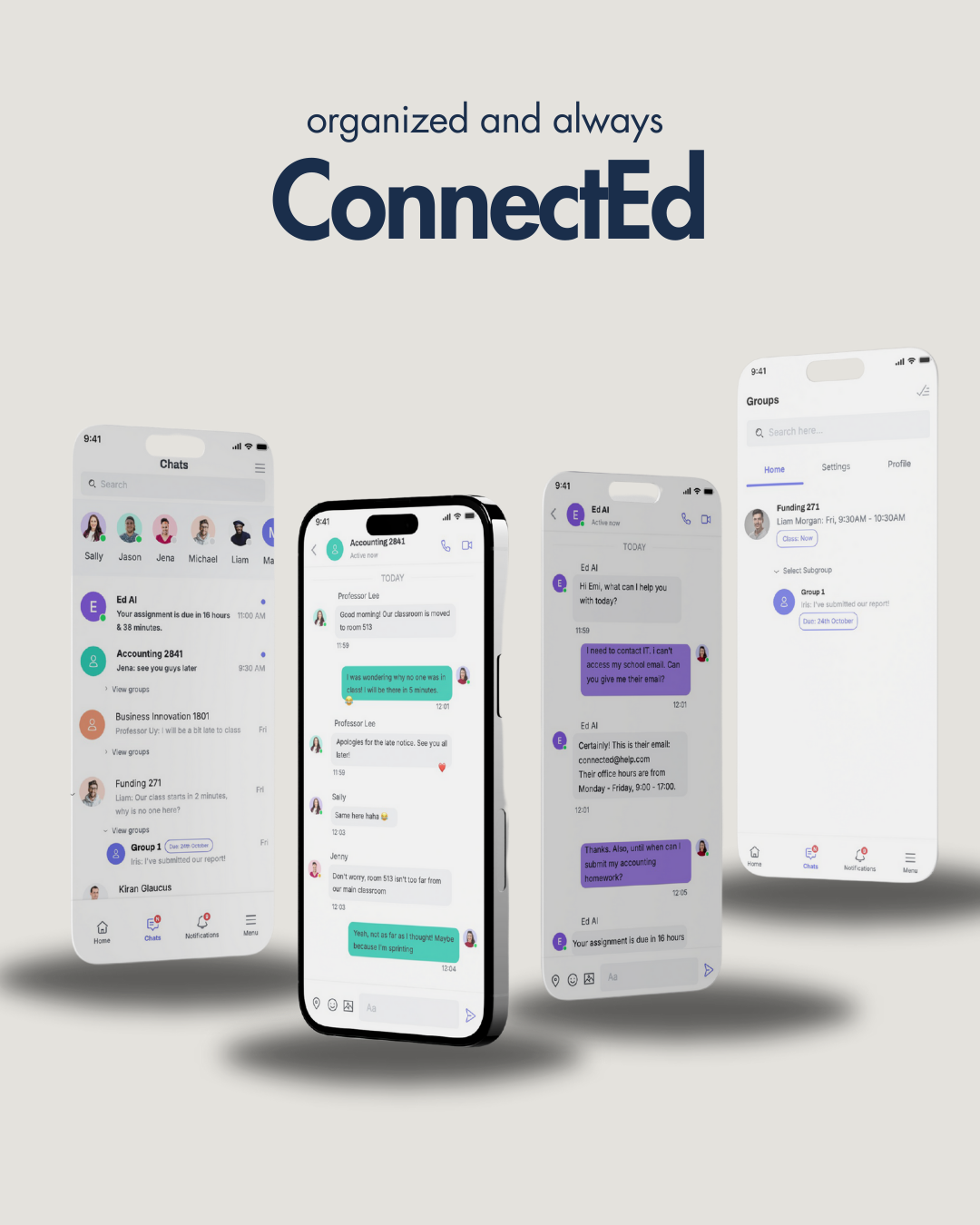 ConnectEd strives to simplify student life through intuitive technology, making communication, collaboration, and campus engagement more accessible and efficient between university students and professors.